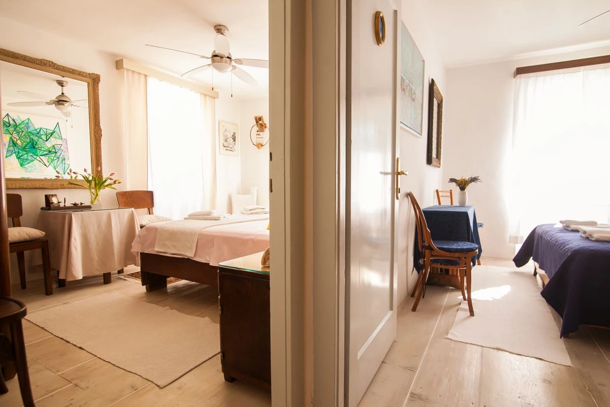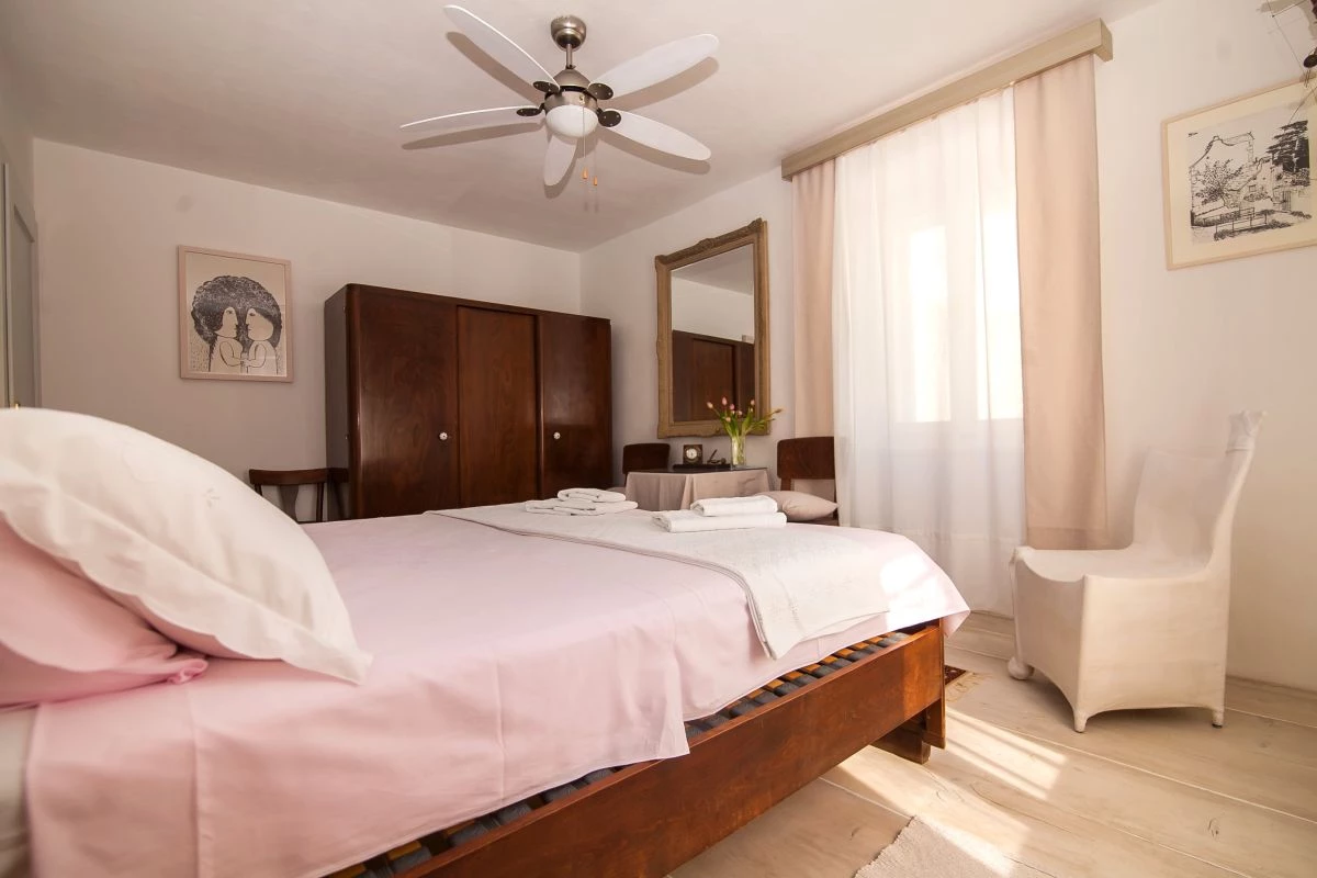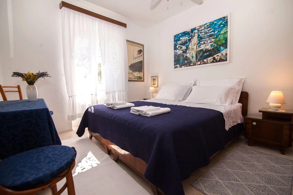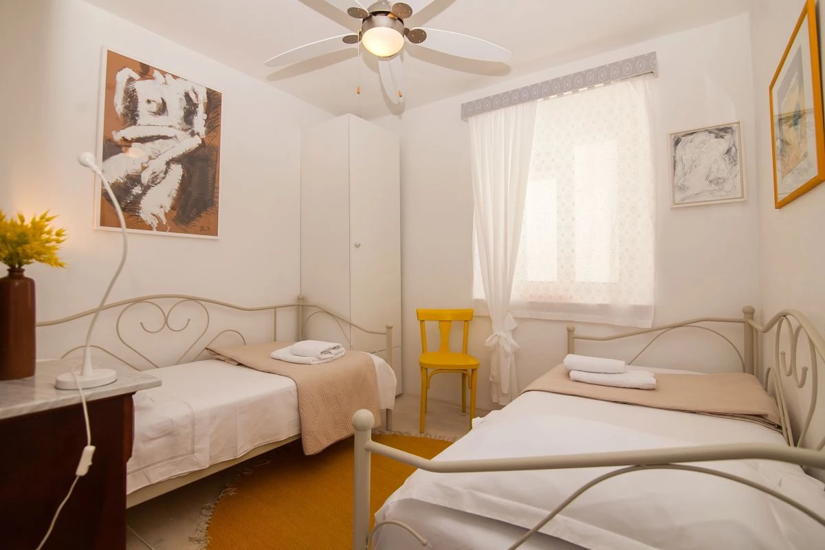 Holiday Home ART is an authentic 2-storey Dalmatian stone house (100 m²). It has been fully modernized to keep up with 21st-century comforts. The house is located in the center of Bol and it can accommodate up to 6 people. It consists of 3 bedrooms, 3 bathrooms, a living room, a kitchen, a patio, and a charming shaded backyard with sun loungers and a gas BBQ.