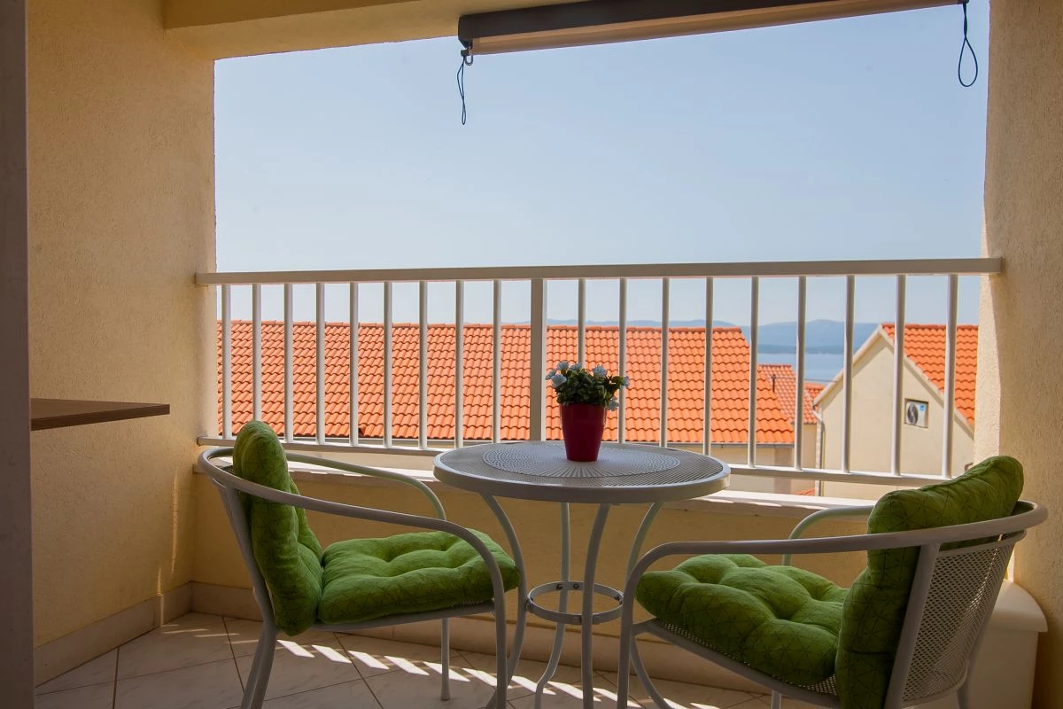Lovely studio apartment with a sunbathed balcony for 2 people. This air-conditioned apartment is fully equipped for everyday needs. It consists of a double bed, a small kitchen with a stove, refrigerator, microwave, and all the utensils necessary for cooking, a bathroom with a shower, and a lovely balcony. It is located in a peaceful neighborhood, away from everyday fuss, and only a 6-minute walk down to the center and 8 minutes from the closest beach.
