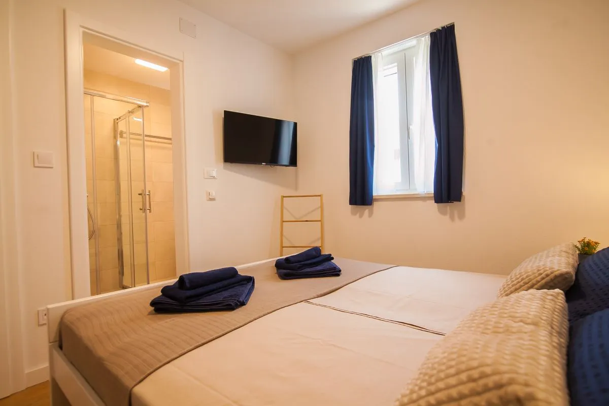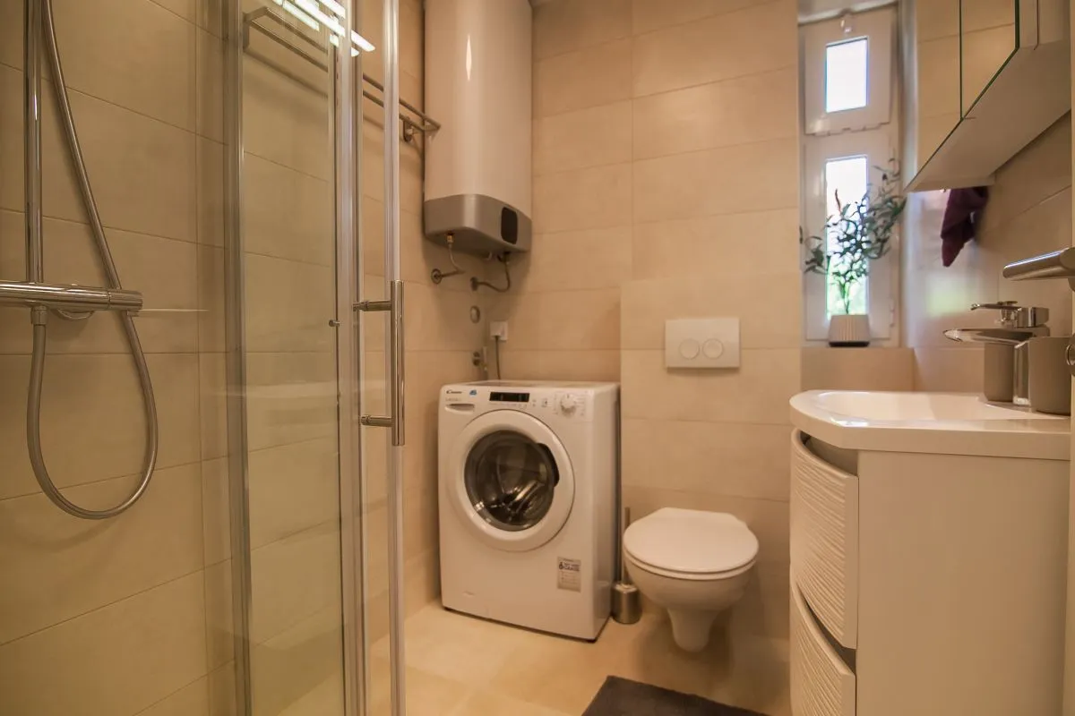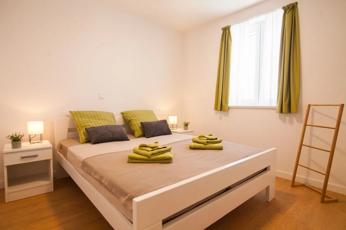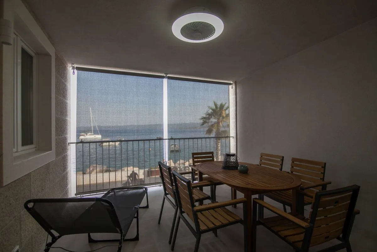 Newly built modern 3-bedroom apartment in the center of Bol. This top-quality air-conditioned apartment accommodates up to 6 people and it is located in a renovated house. It consists of two bedrooms with super king-size beds and one bedroom with two single beds. Each bedroom has a wardrobe and SAT TV. There is a living room area that has a large sofa, SAT-TV, and WiFi, a dining area with a table that can be extended for 6 people, and a modern and fully equipped kitchen with all the appliances and utensils you might need. The apartment has two full bathrooms, of which one is en suite and one has a washing machine. The best feature of the apartment is the outside area, with a table and chairs for 6 and a summer kitchen with an electric grill and a refrigerator.