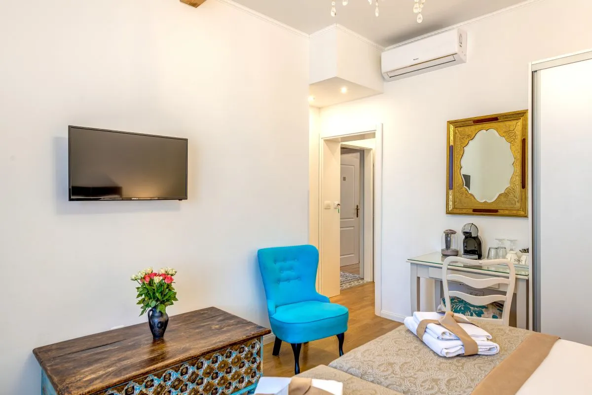 Enjoy this 22m² vintage haven just 6 mins from the center. It features flexible twin beds (80x200) that can be a large double or two singles. Perfect for couples or friends exploring the city, beaches, and Marjan Park. Includes AC, WiFi, mini-fridge, coffee machine, private bathroom, and safe. Enjoy an easy self-check-in with instructions sent 24h prior. Nearby: paid parking (1 min) and free parking (3 mins).