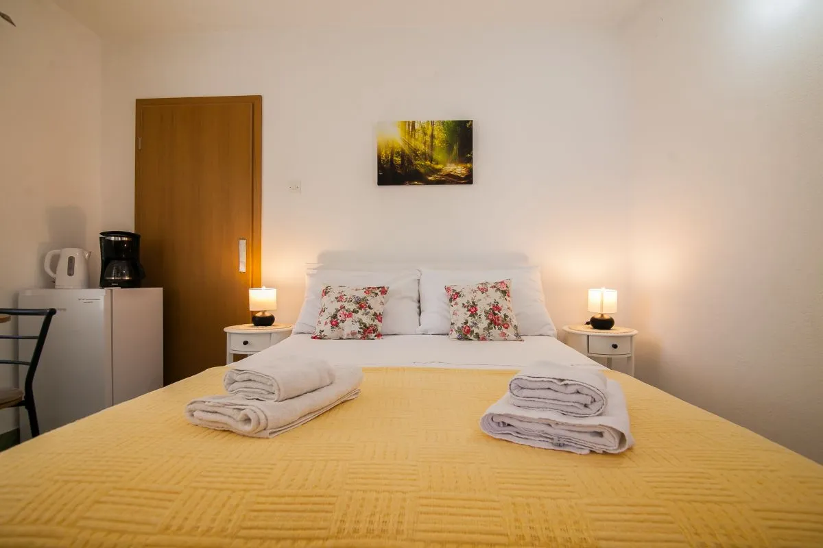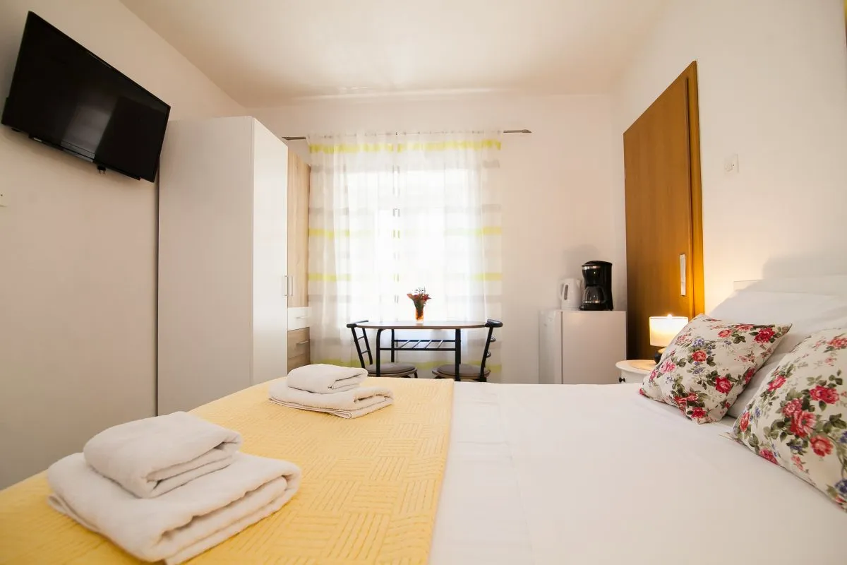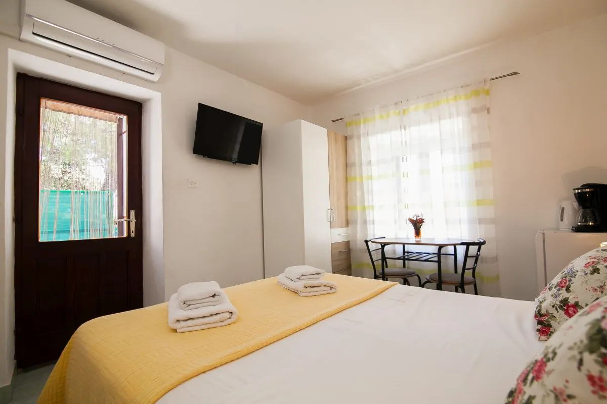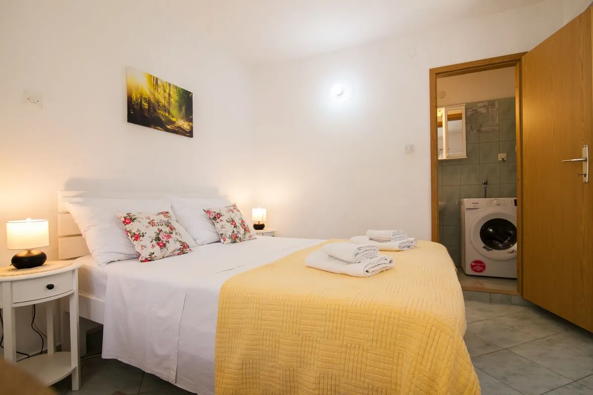Una camera con una posizione perfetta. La camera si trova in un quartiere tranquillo, a soli 2 minuti dalla spiaggia, a 3 minuti dal centro e a pochi secondi dal ristorante e dal mercato. La camera è dotata di letto matrimoniale, armadio, aria condizionata, frigorifero, macchina per il caffè, bollitore e bagno con doccia e lavatrice. Davanti alla camera c'è una bella area salotto ombreggiata.