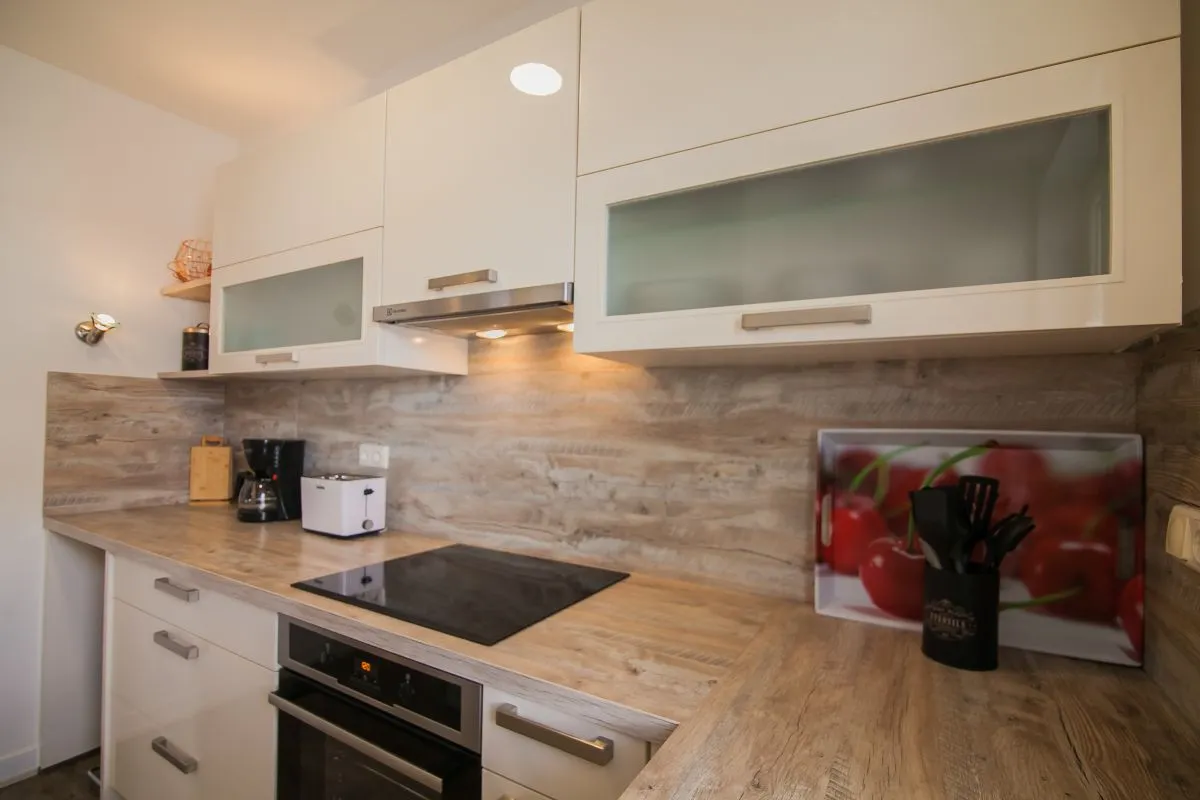 The apartment can comfortably accommodate up to five people, as it includes a pull-out sofa in the living room