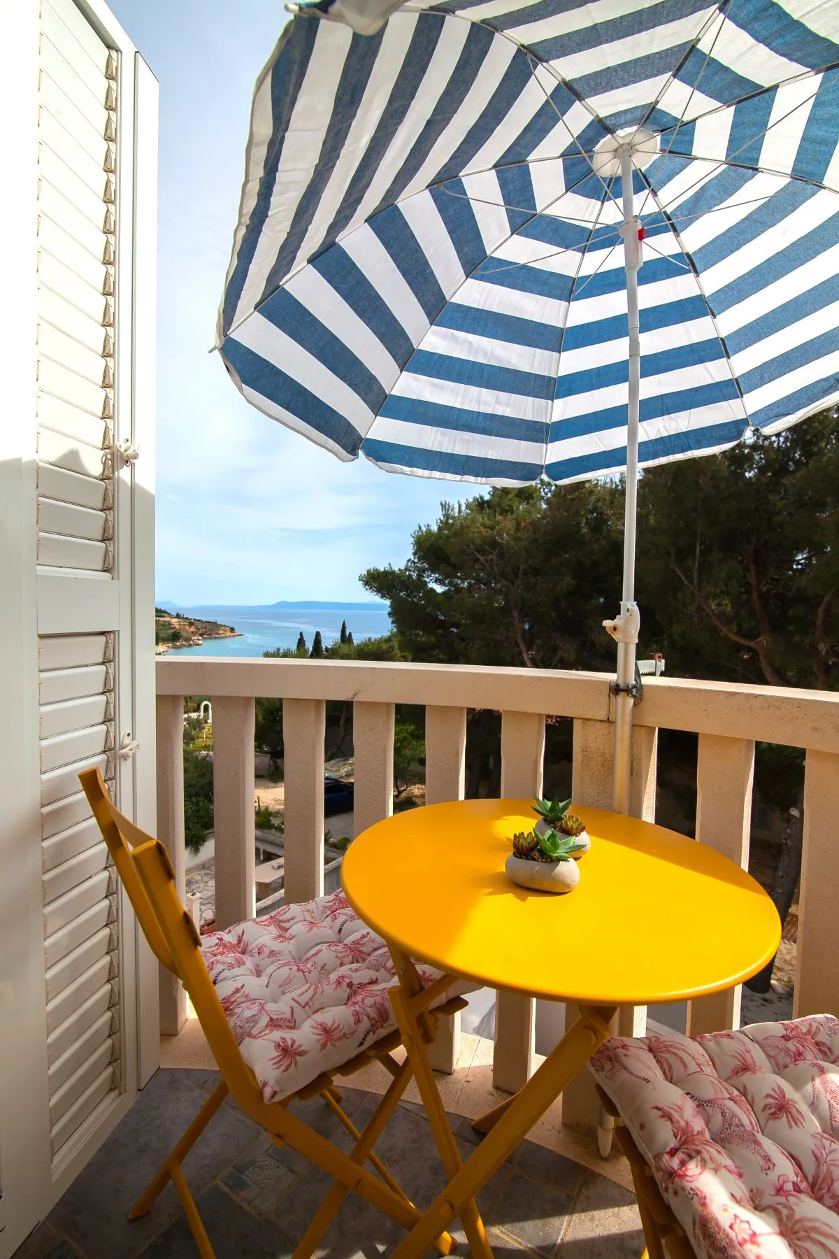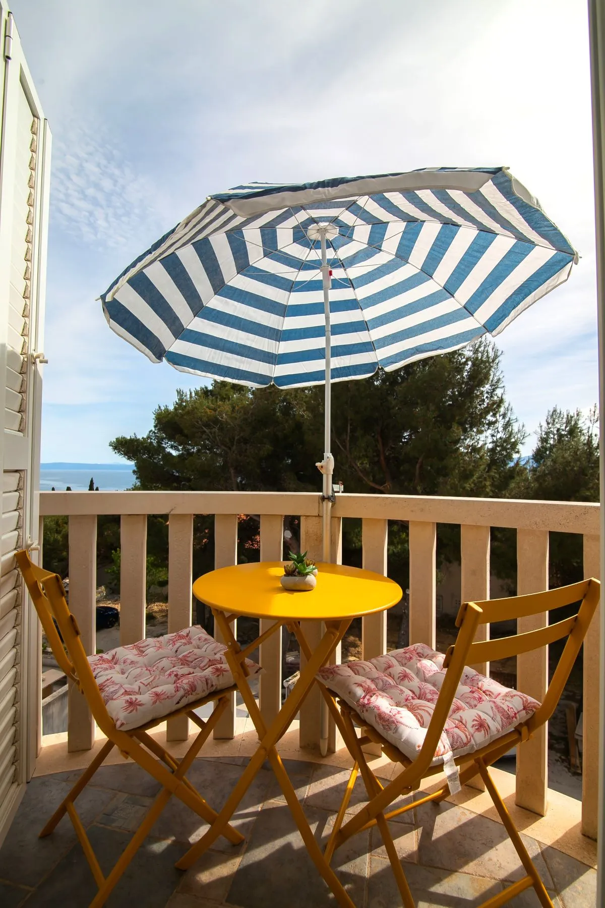 This sunny studio apartment is perfect for two guests and features a balcony with a beautiful sea view.