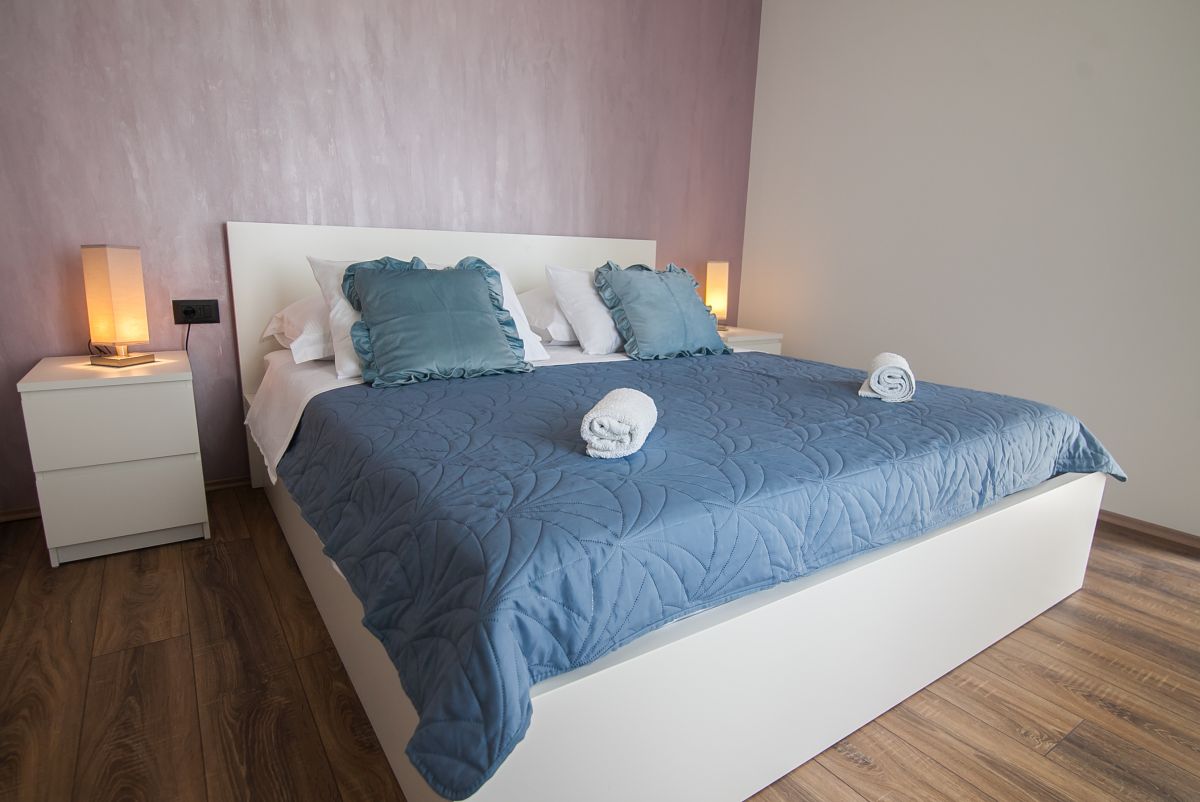 city center. The house consists of three bedrooms, a fully equipped kitchen with a dining area, and two bathrooms with a shower,